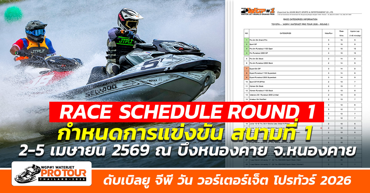 “โตโยต้า - ดับเบิลยู จีพี วัน วอเตอร์เจ็ต โปรทัวร์ 2026” สนามเปิดฤดูกาล