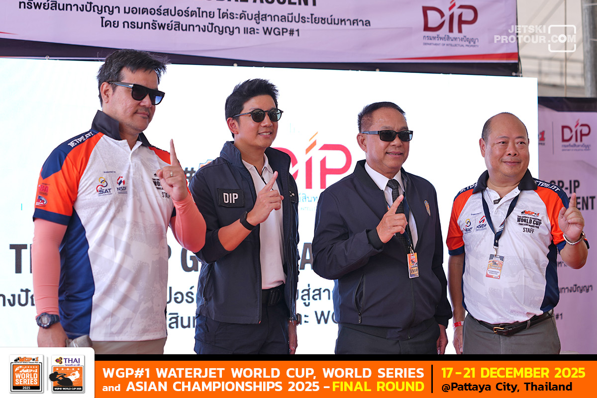 กรรมทรัพย์สินทางปัญญา เชิดชู เจ็ตสกี เวิลด์คัพ ของแบรนด์ WGP#1 คือต้นแบบไอพีกีฬาไทยที่ก้าวถึงระดับโลกไปแล้ว ขณะที่ศึกระดับโปร กินเตน บอสช์ ยอดนักแข่งเบลเยี่ยมมีคะแนนนำรุ่นเรือยืน ในการแข่งขันวันที่ 4 ของเจ็ตสกีชิงแชมป์โลก “การบินไทย ดับเบิลยู จีพี วัน วอเตอร์เจ็ต เวิลด์ คัพ 2025” ที่หาดจอมเทียนพัทยา ชลบุรี เมื่อวันที่ 20 ธ.ค.
