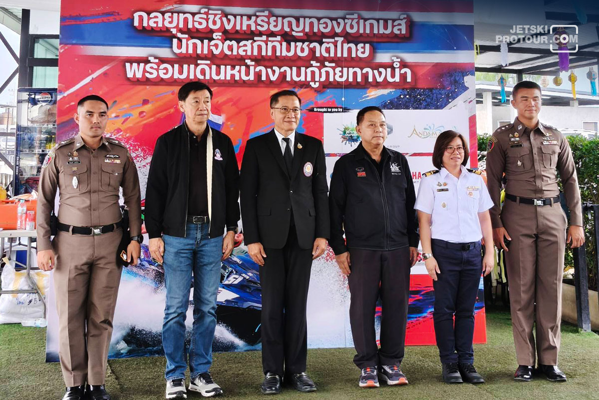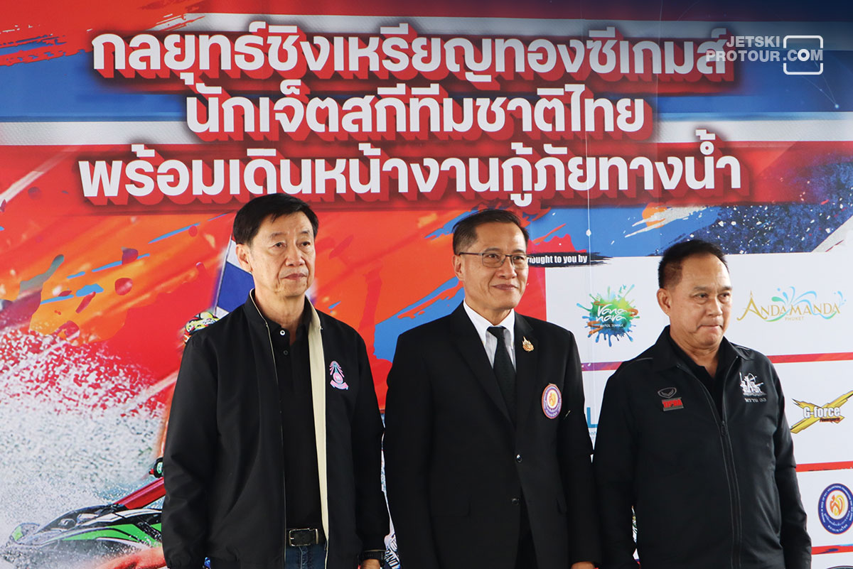 โดยโอกาสนี้ได้ทำการเปืดตัว นักกีฬาเจ็ตสกีทีมชาติไทย ชุดซีเกมส์ 2025 จำนวน 12 ขุนพล ที่จะลงแข่งขันชิง 6 เหรียญทอง ใน 6 รุ่น อย่างเป็นทางการ ซึ่งไล่เรียงทีละรุ่นดังนี้ เจ็ตสกียืน แต่งเครื่องยนต์เต็มพิกัด (Ski GP) มี ธนวินท์ โมลี (#T4) ที่มีประสบการณ์นานาชาติโชกโชน และอานนท์ หงษ์กลาง (#T19) มือดี มุ่งมั่นสูง ลงแข่งขัน, รุ่นเจ็ตสกียืน 1500 ซีซี เครื่องยนต์มาตรฐานโรงงาน แต่งเครื่องยนต์ได้ตามข้อกำหนดการแต่งเครื่องยนต์ (Ski 1500 Stock) ส่ง นันทวัฒน์ สิงห์อุไร (#T111) นักแข่งใจสู้ ประสบการณ์ดี และธนวิชญ์ โมลี (#T30) ดาวรุ่งของไทยในนาทีนี้ ลงแข่งขัน