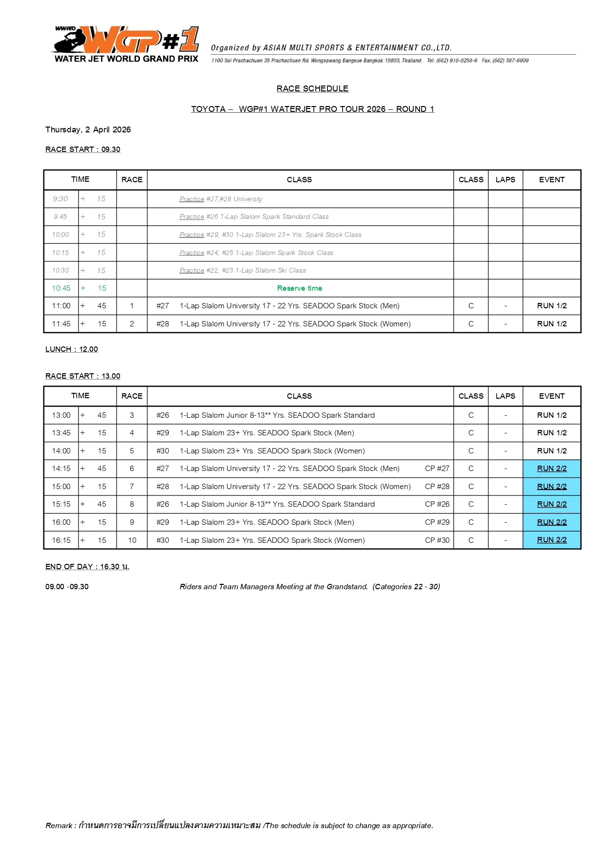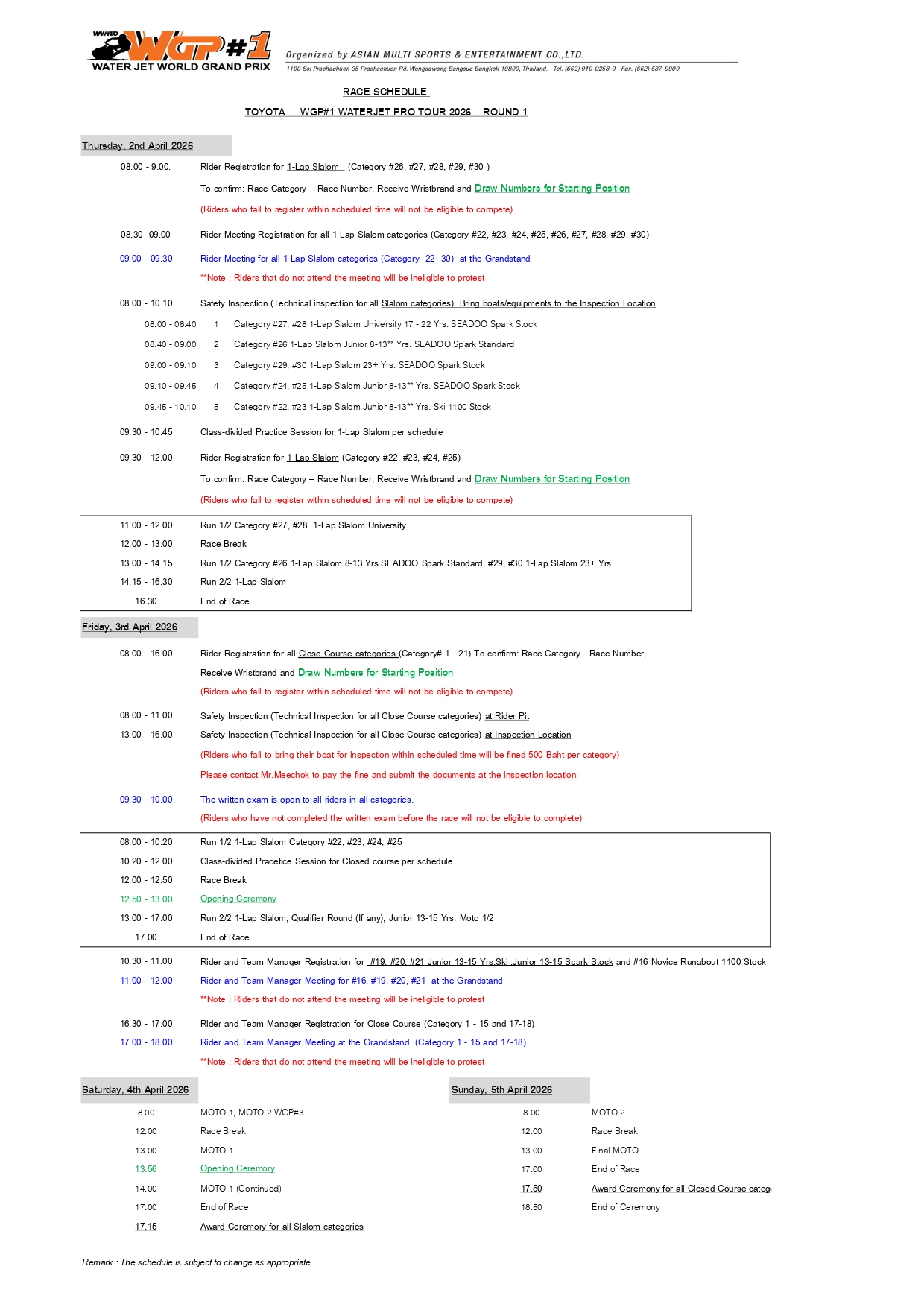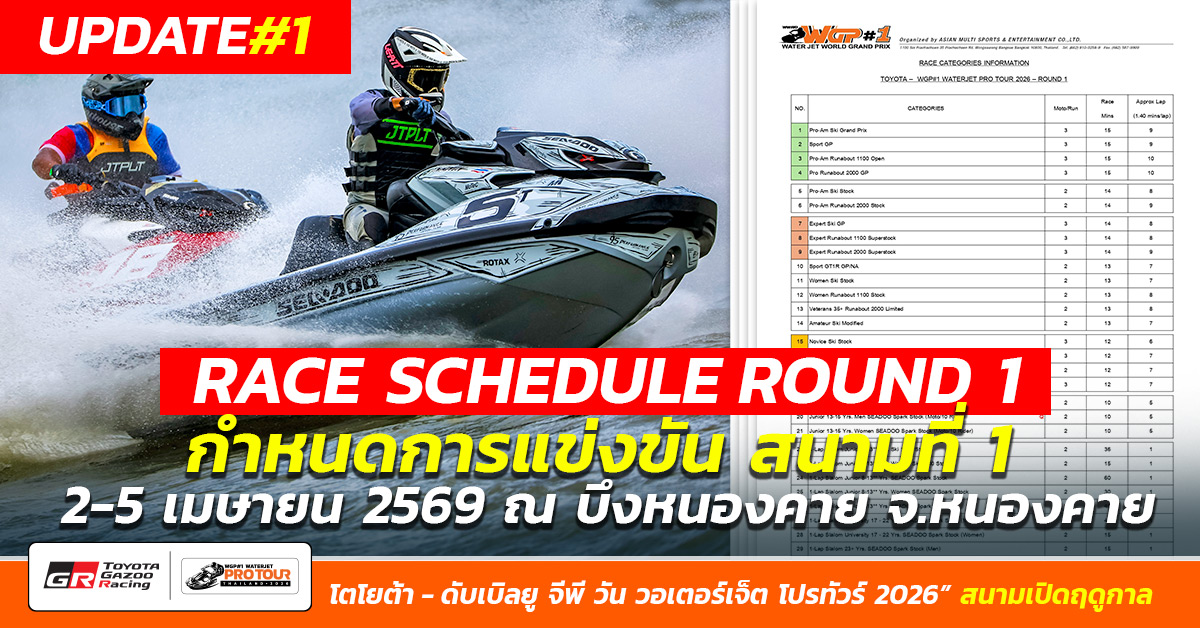 สามารถติดตามข่าวสารการแข่งขัน “ดับเบิลยู จีพี วัน วอเตอร์เจ็ต โปรทัวร์ 2026” ได้ทาง :