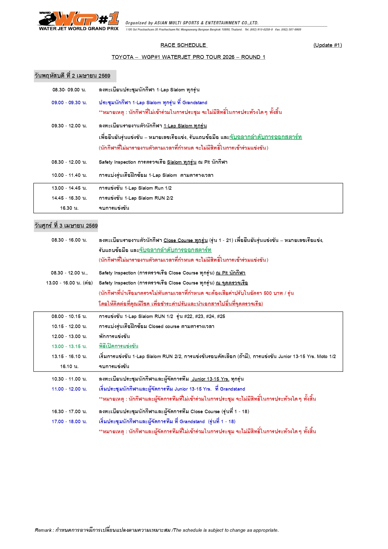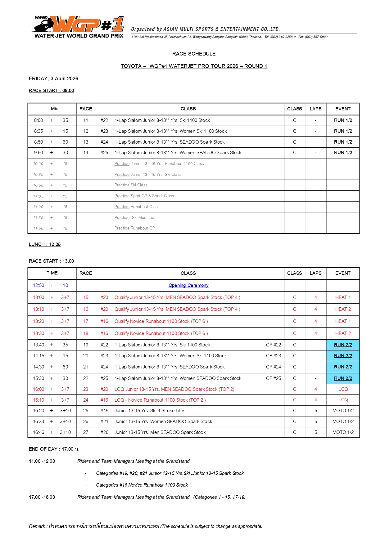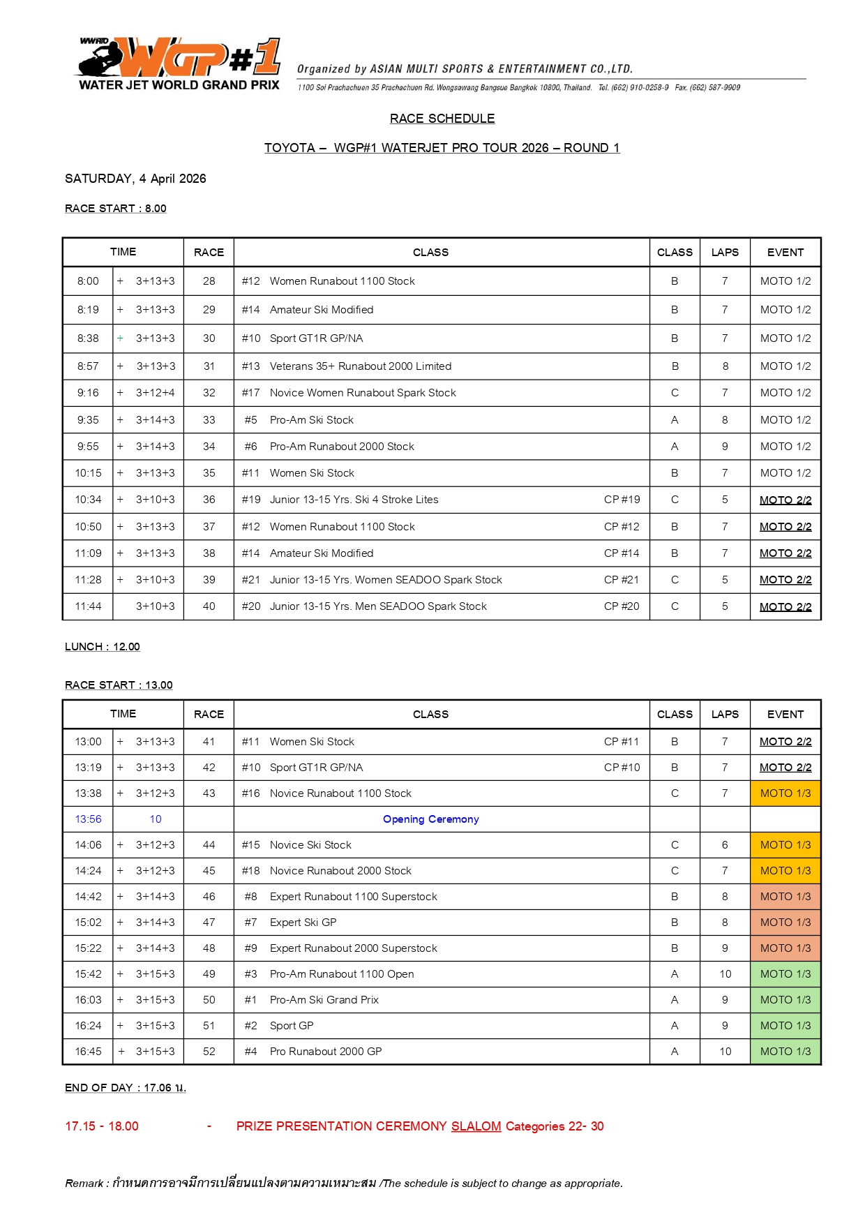 Race Schedule Round 1 - กำหนดการแข่งขัน สนามที่ 1