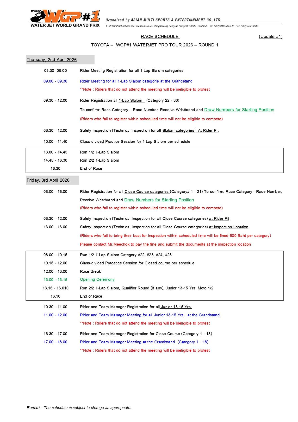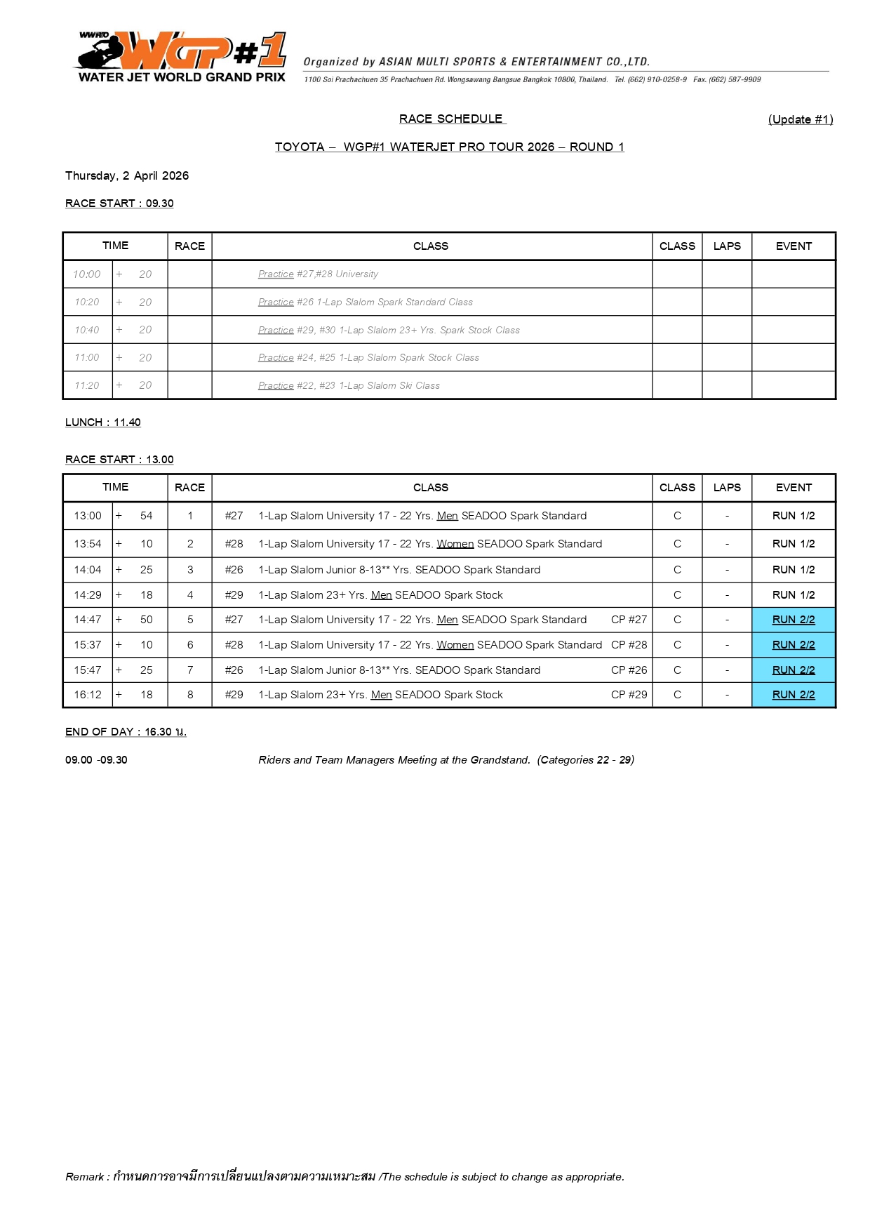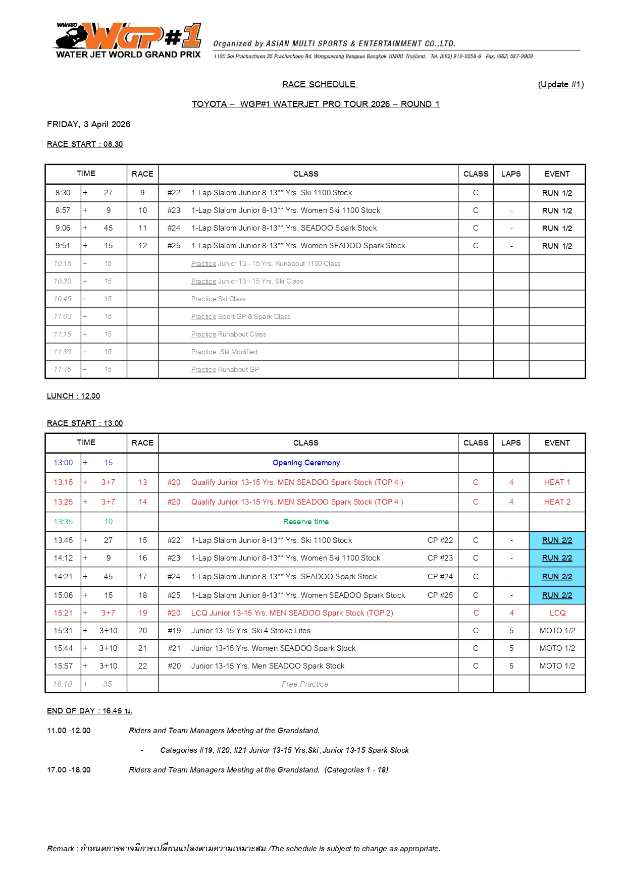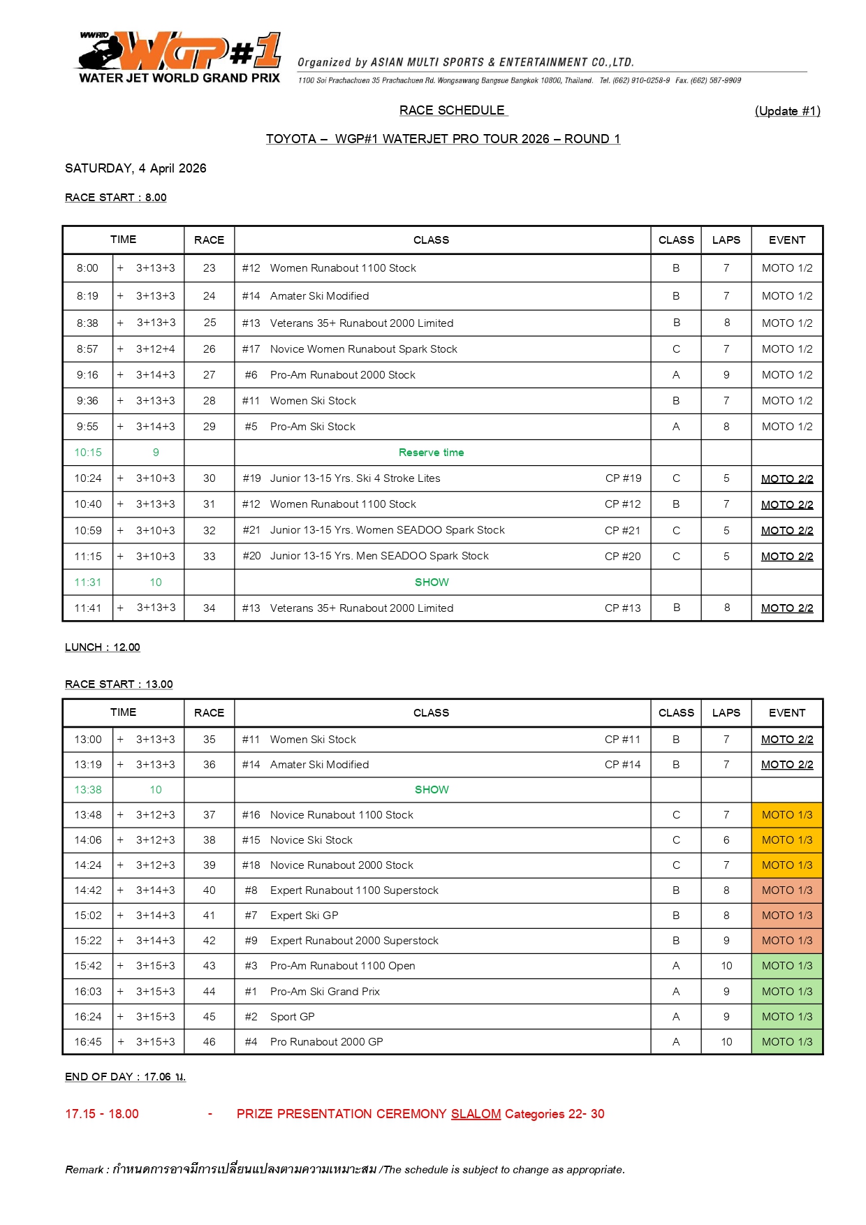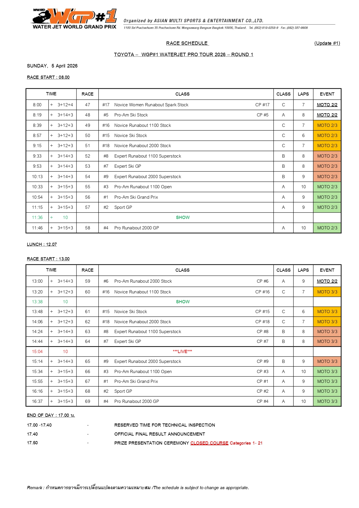 ⇲ Download Race Schedule (PDF File) update 27-3-2026