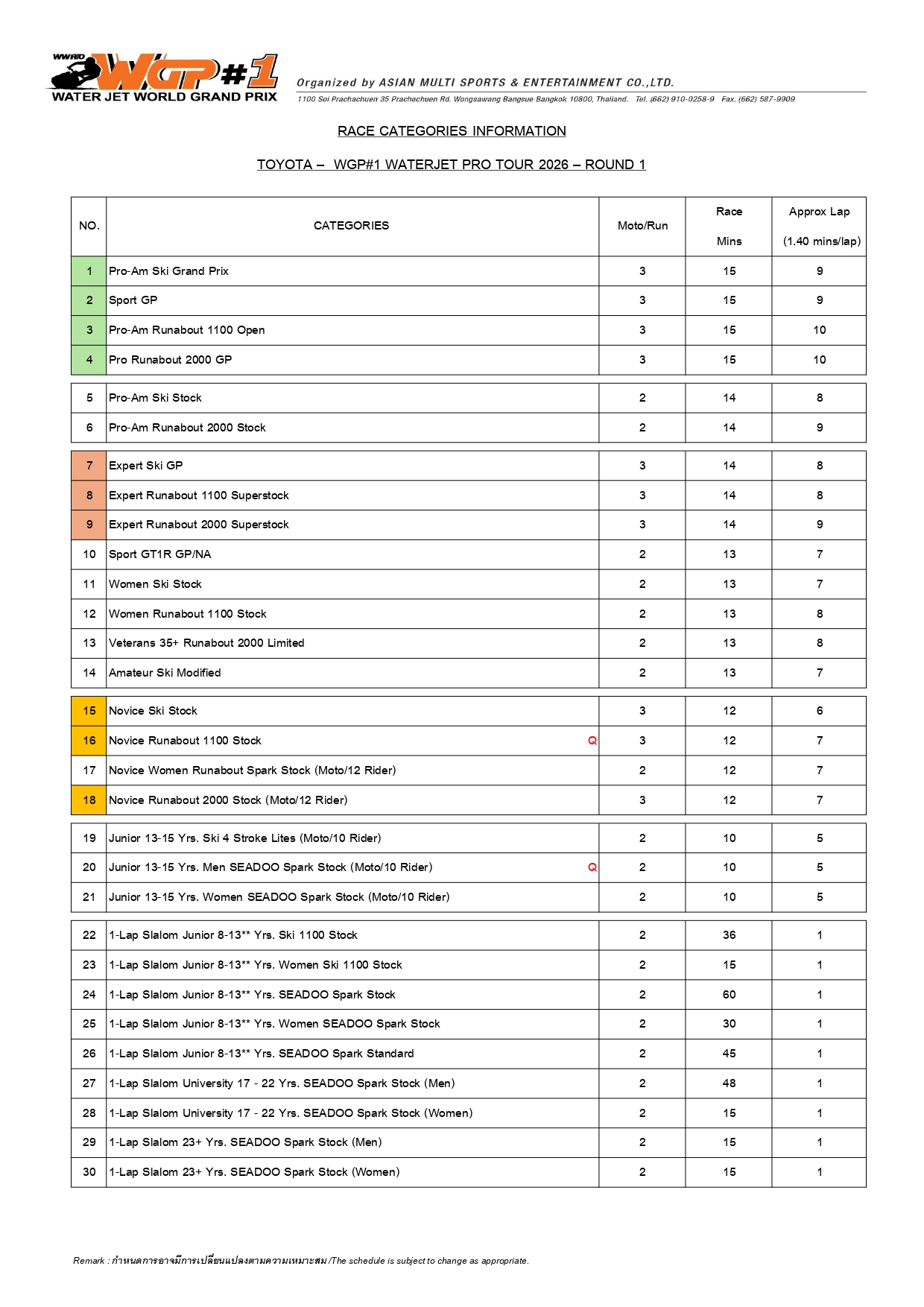 ⇲ Download Race Schedule (PDF File) update 15-3-2026