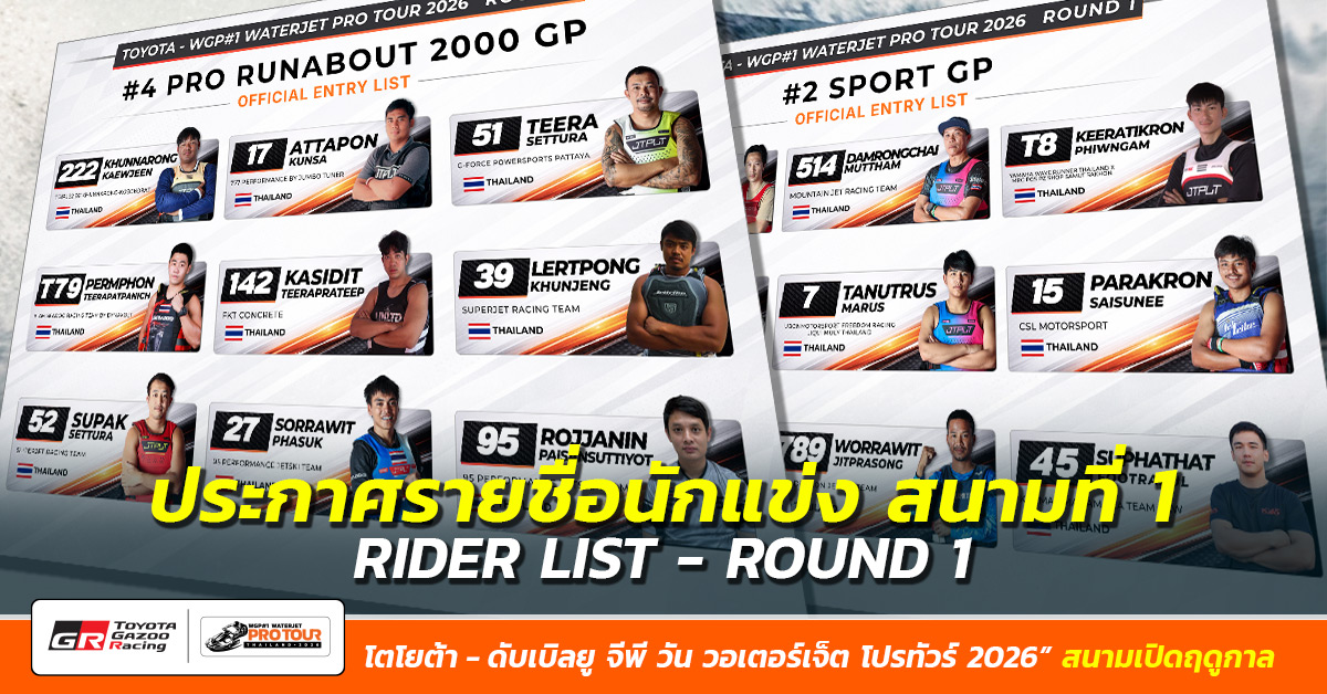 โตโยต้า - ดับเบิลยู จีพี วัน วอเตอร์เจ็ต โปรทัวร์ ไทยแลนด์ 2026” สนามเปิดฤดูกาล