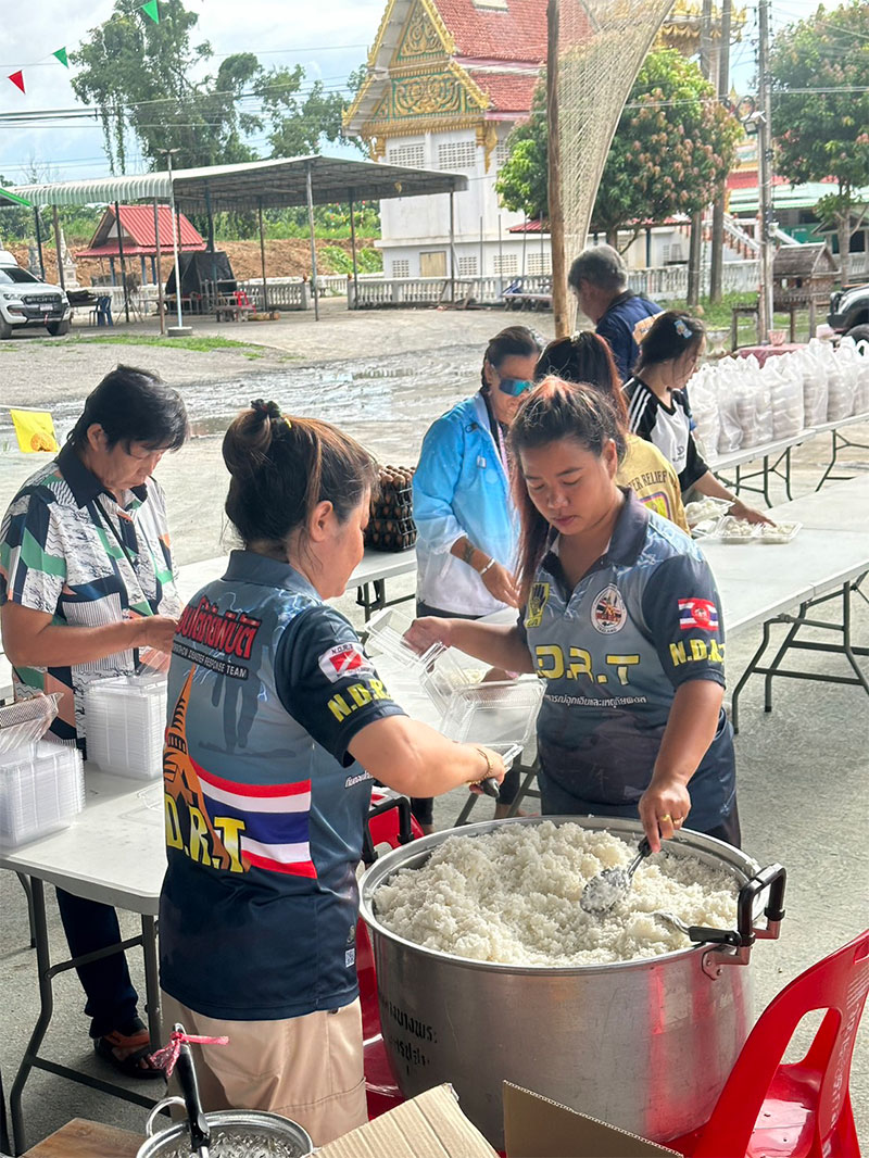 “บิ๊กเปี๊ยก” พล.ต.อ.เดชณรงค์ สุทธิชาญบัญชา นายกสมาคมฯ และ “บิ๊กบอย” ปิยะศิริ วัฒนวรางกูร เลขาธิการฯ ยังคงเกาะติดสถานะการณ์น้ำท่วมทางภาคเหนืออย่างใกล้ชิด ล่าสุดได้รับการสนับสนุนจาก อรพรรณ ธีระพัฒน์พาณิชย์ แชมป์โลกหญิงชาวไทย นำทีมเจ็ตสกีจิตอาสาทีมที่ 2 เดินทางถึงวัดเตว็ดกลาง อ.ศรีสำโรง จังหวัดสุโขทัย นำของบริจาคล็อตใหญ่แจกจ่ายให้ชาวบ้านที่เดือดร้อนทันที พร้อมตั้งครัวกลางสำหรับชาวบ้านผู้ประสบภัยและเจ้าหน้าที่ทุกคน โดยทำอาหารแจกวันละ 3,000 กล่อง ส่วนอีกด้านเร่งประสานร่วมกับทีมที่ 1 เข้าช่วยเหลือชาวบ้านในพื้นที่ทันที