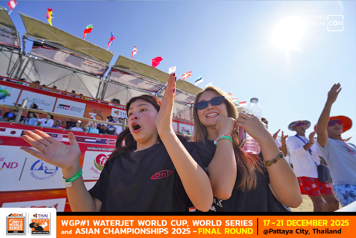 ศึกเจ็ตสกีชิงแชมป์โลก “การบินไทย ดับเบิลยู จีพี วัน วอเตอร์เจ็ต เวิลด์ คัพ 2025” ที่หาดจอมเทียนพัทยา ชลบุรี เริ่มการแข่งขันวันแรกเมื่อวันที่ 17 ธันวาคม โดยเริ่มจากการแข่งขันในรุ่นเยาวชน และระดับสมัครเล่น ไล่ไปจนถึงรุ่นมืออาชีพที่มีนักแข่งดังจากทั่วโลกมาชิงชัยกันคับคั่ง