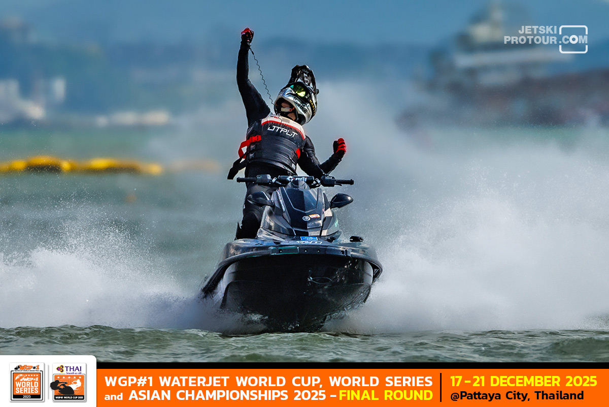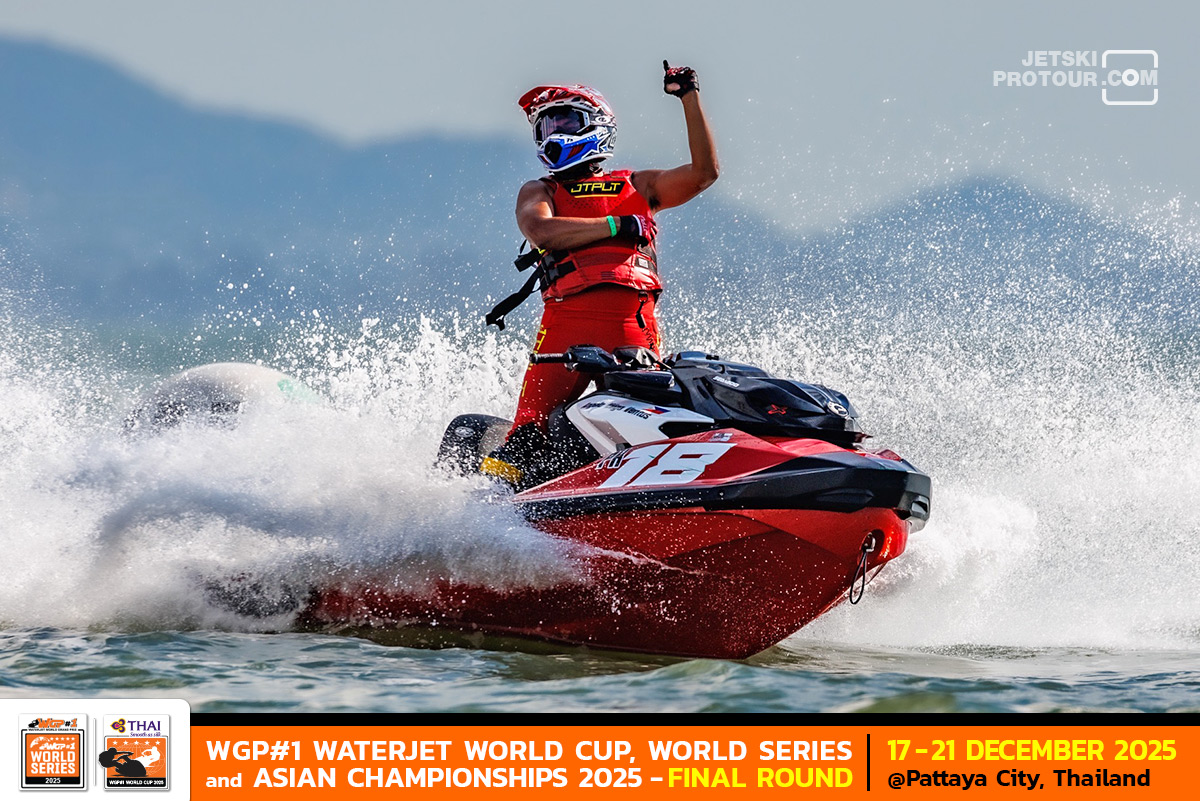 ศึกเจ็ตสกีชิงแชมป์โลก “การบินไทย ดับเบิลยู จีพี วัน วอเตอร์เจ็ต เวิลด์ คัพ 2025” ซึ่งรวมการชิงแชมป์ทั้งแชมป์โลก, แชมป์เวิลด์ ซีรีส์ และแชมป์เอเชีย ที่หาดจอมเทียนพัทยา ชลบุรี การแข่งขันวันที่ 3 เมื่อวันที่ 19 ธันวาคม เป็นการตัดสินตำแหน่งแชมป์ในระดับสมัครเล่นและกึ่งอาชีพ ซึ่งถือเป็นวันที่นักแข่งไทยฟอร์มดีครองถึง 5 แชมป์โลก
