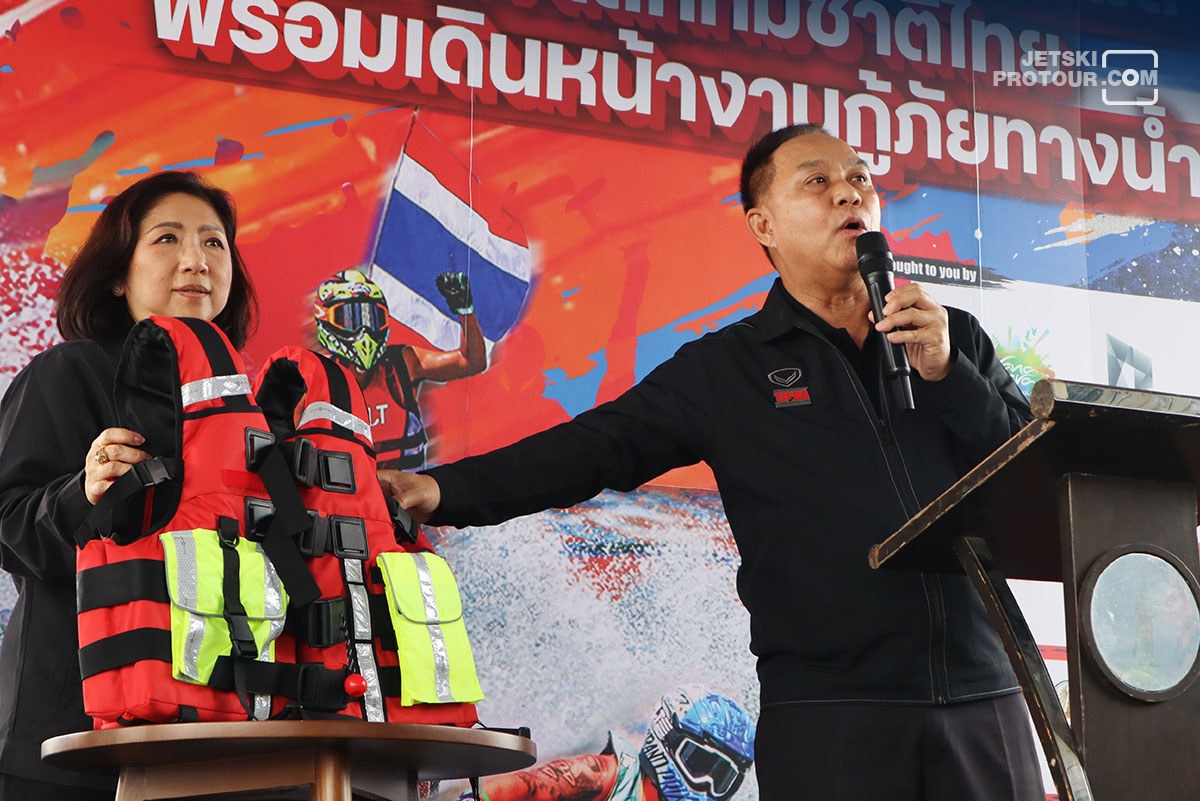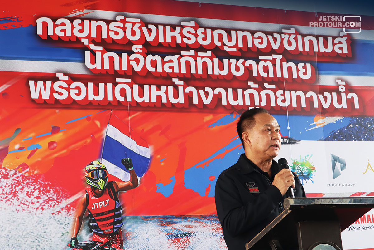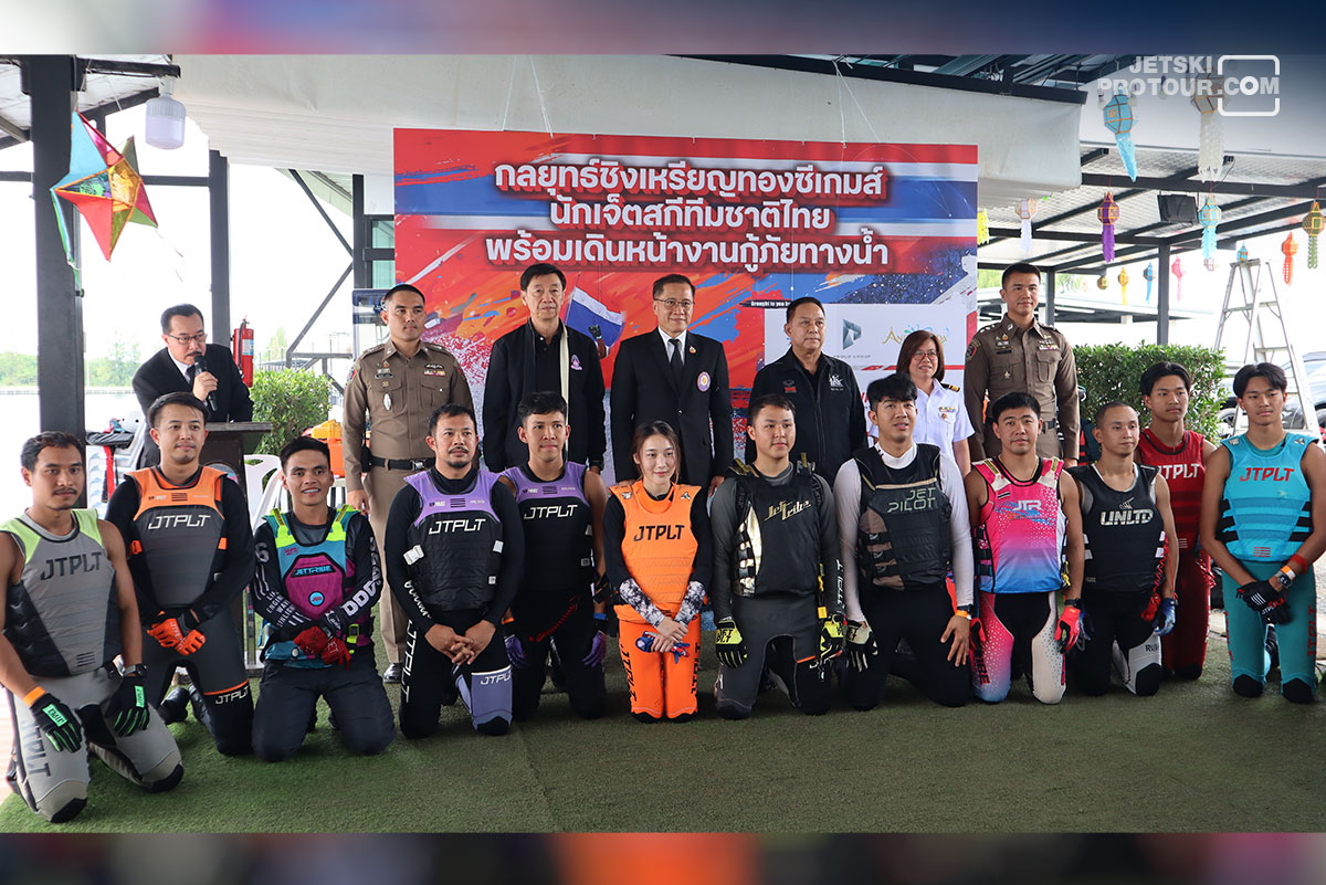โดยโอกาสนี้ได้ทำการเปืดตัว นักกีฬาเจ็ตสกีทีมชาติไทย ชุดซีเกมส์ 2025 จำนวน 12 ขุนพล ที่จะลงแข่งขันชิง 6 เหรียญทอง ใน 6 รุ่น อย่างเป็นทางการ ซึ่งไล่เรียงทีละรุ่นดังนี้ เจ็ตสกียืน แต่งเครื่องยนต์เต็มพิกัด (Ski GP) มี ธนวินท์ โมลี (#T4) ที่มีประสบการณ์นานาชาติโชกโชน และอานนท์ หงษ์กลาง (#T19) มือดี มุ่งมั่นสูง ลงแข่งขัน, รุ่นเจ็ตสกียืน 1500 ซีซี เครื่องยนต์มาตรฐานโรงงาน แต่งเครื่องยนต์ได้ตามข้อกำหนดการแต่งเครื่องยนต์ (Ski 1500 Stock) ส่ง นันทวัฒน์ สิงห์อุไร (#T111) นักแข่งใจสู้ ประสบการณ์ดี และธนวิชญ์ โมลี (#T30) ดาวรุ่งของไทยในนาทีนี้ ลงแข่งขัน