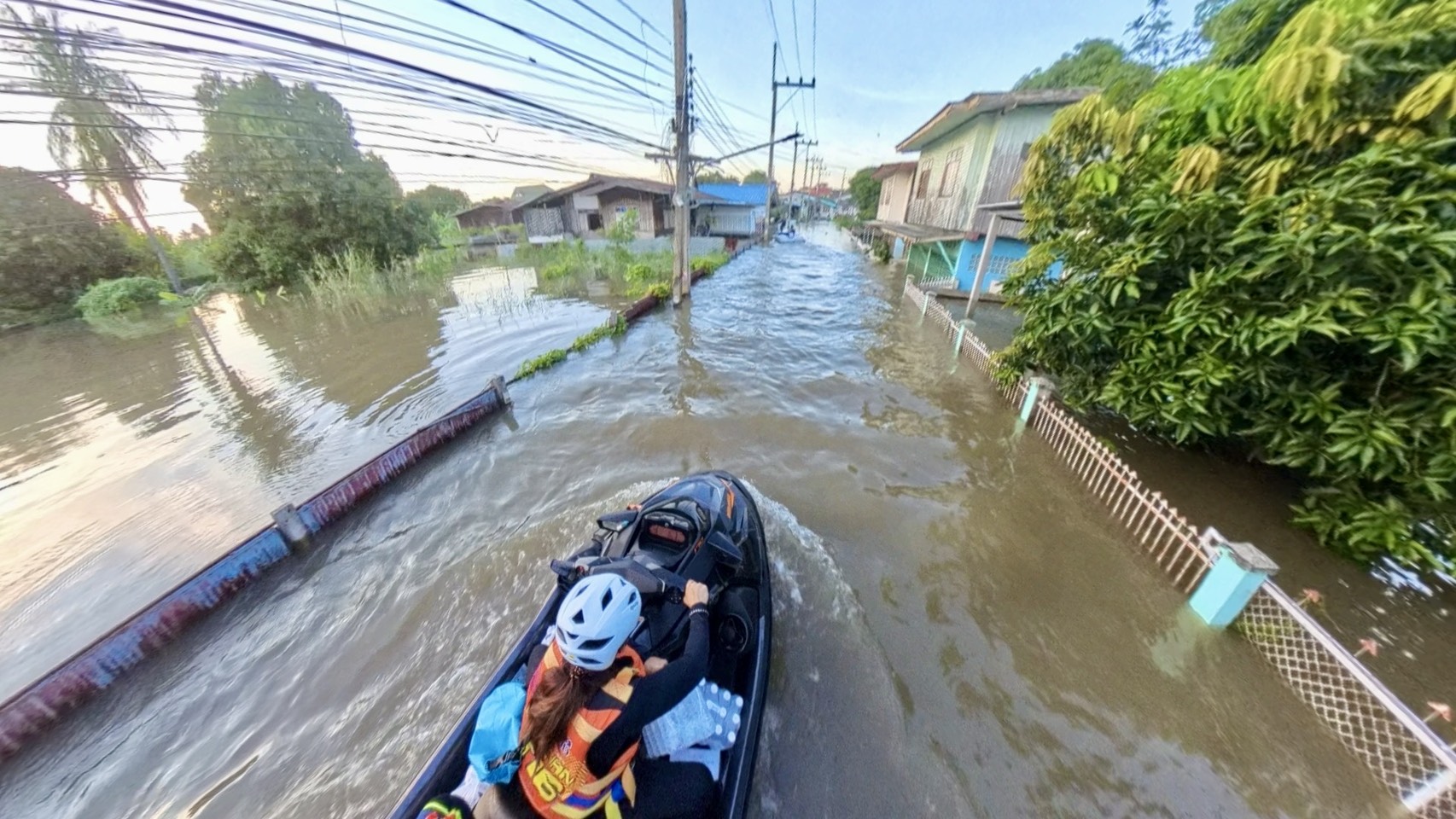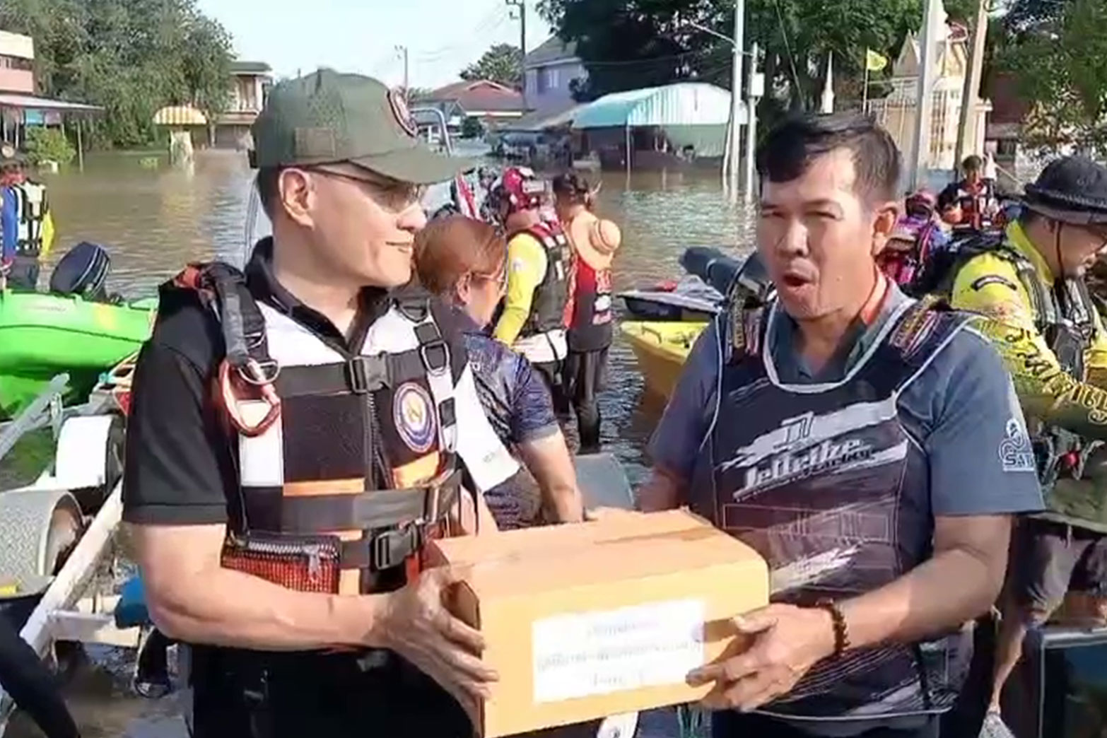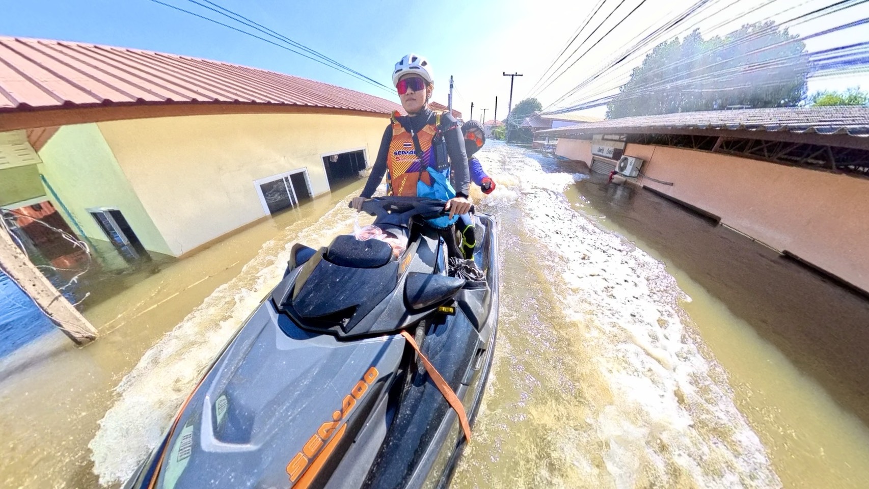 9 นักกีฬาเจ็ตสกีโครงการ “อาสาสมัครกู้ภัยและช่วยดูแลสิ่งแวดล้อมทางน้ำ” สังกัดสมาคมกีฬาเจ็ตสกีแห่งประเทศไทยฯ เร่งรุดเข้าช่วยเหลือบรรเทาภัยจากภาวะน้ำท่วมในพื้นที่อยุธยาและสิงห์บุรี ด้วยความทุ่มเทหนัก เพื่อบรรเทาความเดือนร้อนเท่าที่จะทำได้ โดยร่วมกับ มูลนิธิเพื่อนพึ่ง (ภา) - ยามยาก สนับสนุนอาหารพร้อมทานและน้ำดื่ม กระจายให้พี่น้อง พบชาวบ้านเดือนร้อนหนัก ข้าวหนึ่งกล้อง ต้องแบ่งทานทั้งครอบครัว 5 คน บางชุมชมยังขาดความช่วยเหลือท่ามกลางอุปสรรคทั้งไฟดูด และกระแสน้ำแรงจัด ด้าน “บิ๊กเปี๊ยก” นายกเจ็ตสกีฯ ชมเชยน้อง ๆ เสียสละ ไม่เคยทิ้งภารกิจ