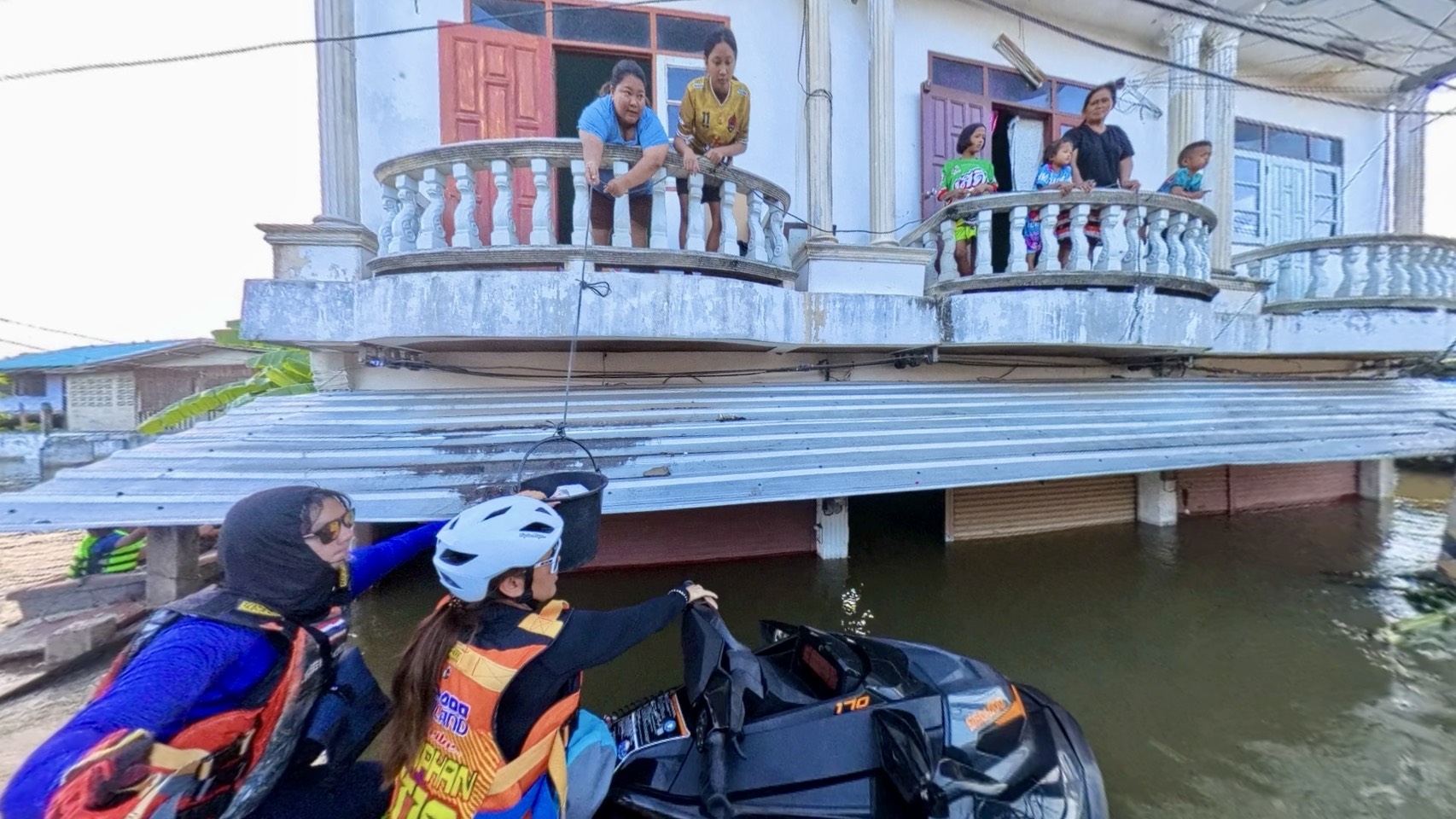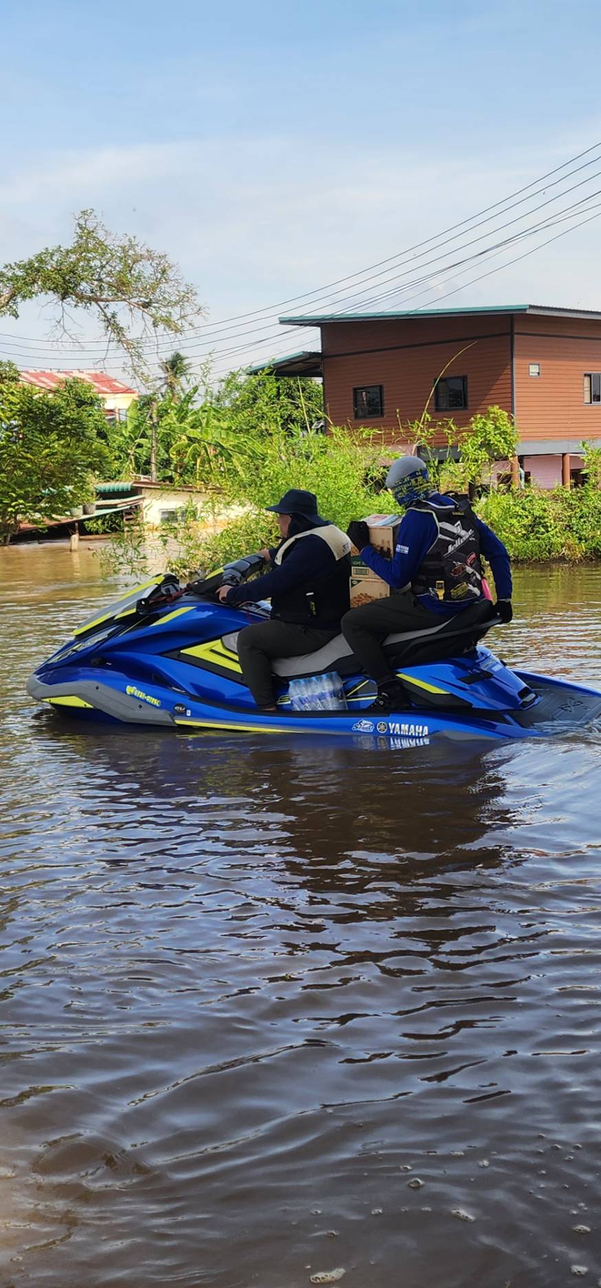 ขอเรียนว่าน้อง ๆ และทีมงานเจ็ตสกีจิตอาสา “อาสาสมัครกู้ภัยและช่วยดูแลสิ่งแวดล้อมทางน้ำ” สังกัดสมาคมกีฬาเจ็ตสกีแห่งประเทศไทยฯ ทุกคน ออกช่วยเหลือพี่น้องประชาชนด้วยความเต็มใจ เสียสละเพื่อส่วนรวม ทั้งเวลาและทุนทรัพย์ เพราะเกือบทั้งหมดเป็นทุนทรัพย์ของทุก ๆ คนเองทั้งสิ้น จึงขอชื่นชมการมีจิตอาสาทำงาน สมาคมฯ เป็นส่วนเล็กๆ เพียงแค่เป็นศูนย์กลางการทำงาน ประสานงานกับหน่วยงานจังหวัด รวมถึงองค์กรที่มีจิตใจกุศลอย่างสูง ได้แก่ มูลนิธิเพื่อนพึ่ง (ภา) - ยามยาก โดยเลขาธิการและกรรมการมูลนิธิ ดร.วีระศักด์ โค้วสุรัตน์ นั้น ได้ลงพื้นที่ ได้รับทราบ และเห็น เข้าถึงด้วยตัวเอง ซึ่งครั้งนี้ มูลนิธิฯ ได้มอบชุดอาหารพร้อมทานและน้ำดื่มสะอาดกว่า 3,000 ชุด เพื่อช่วยเหลือพี่น้องประชาชนในทันที