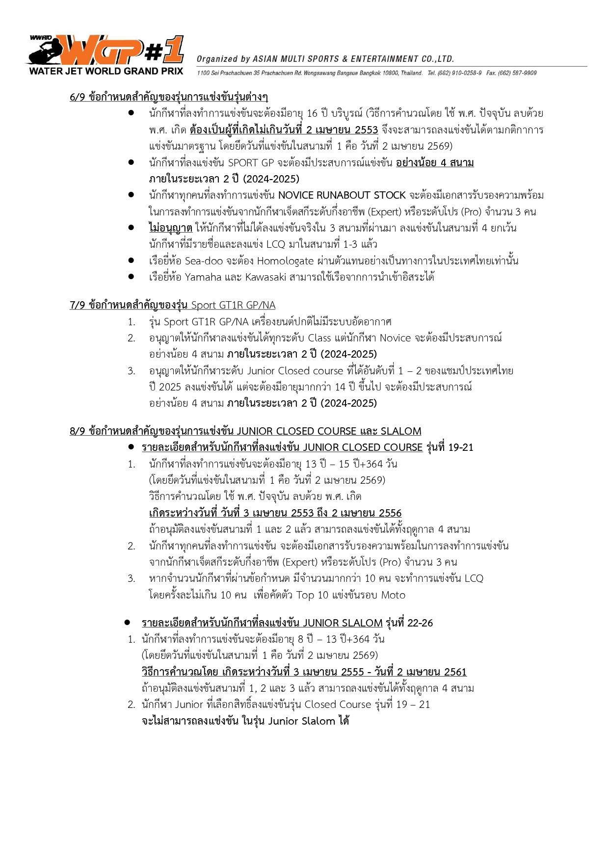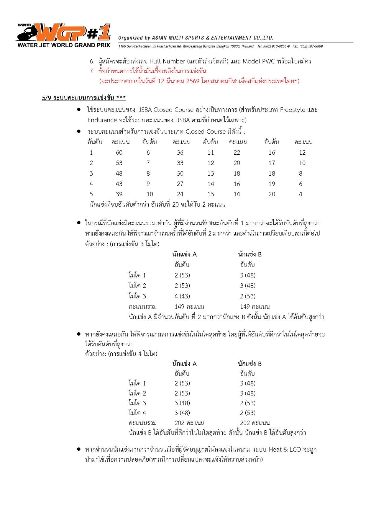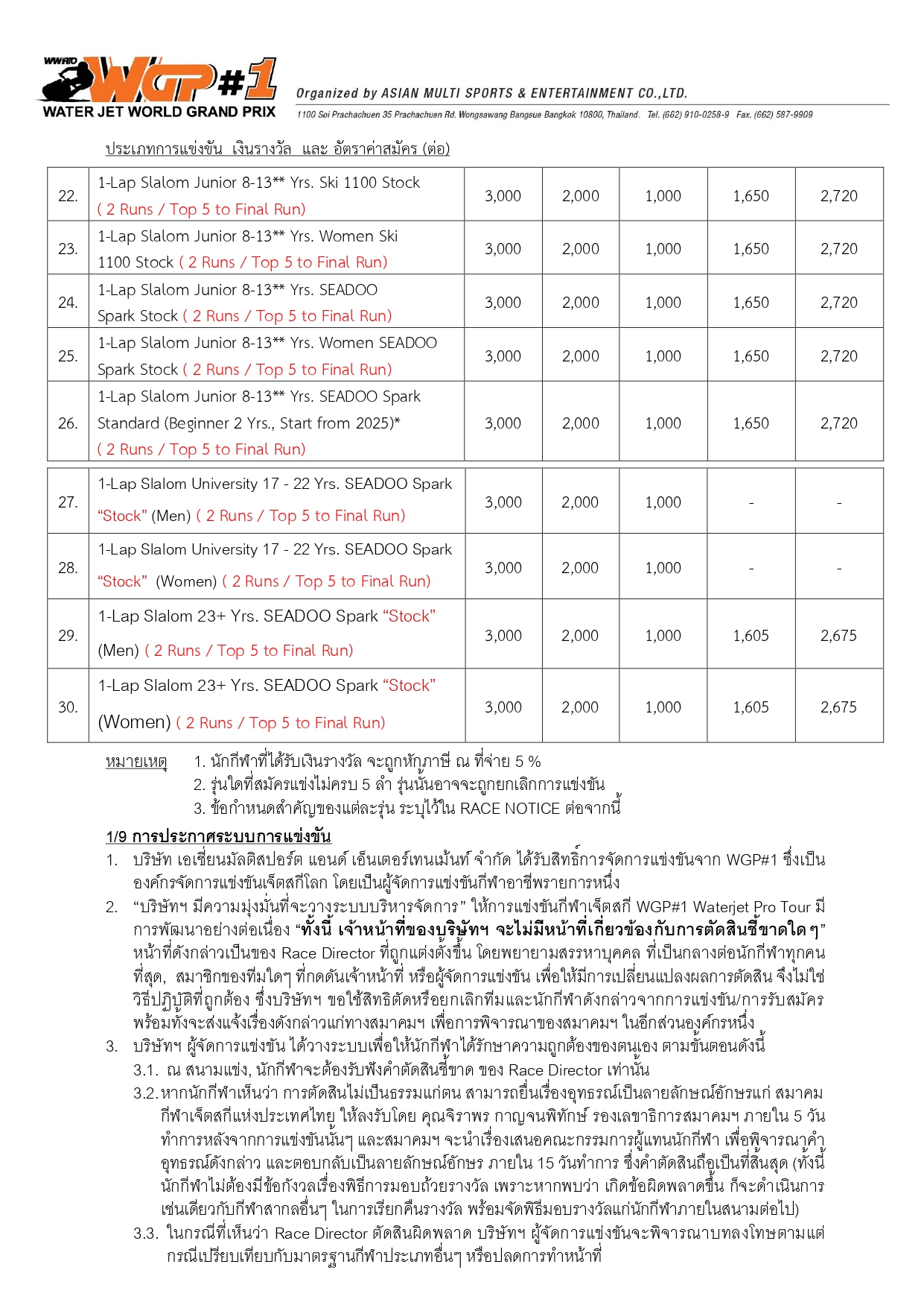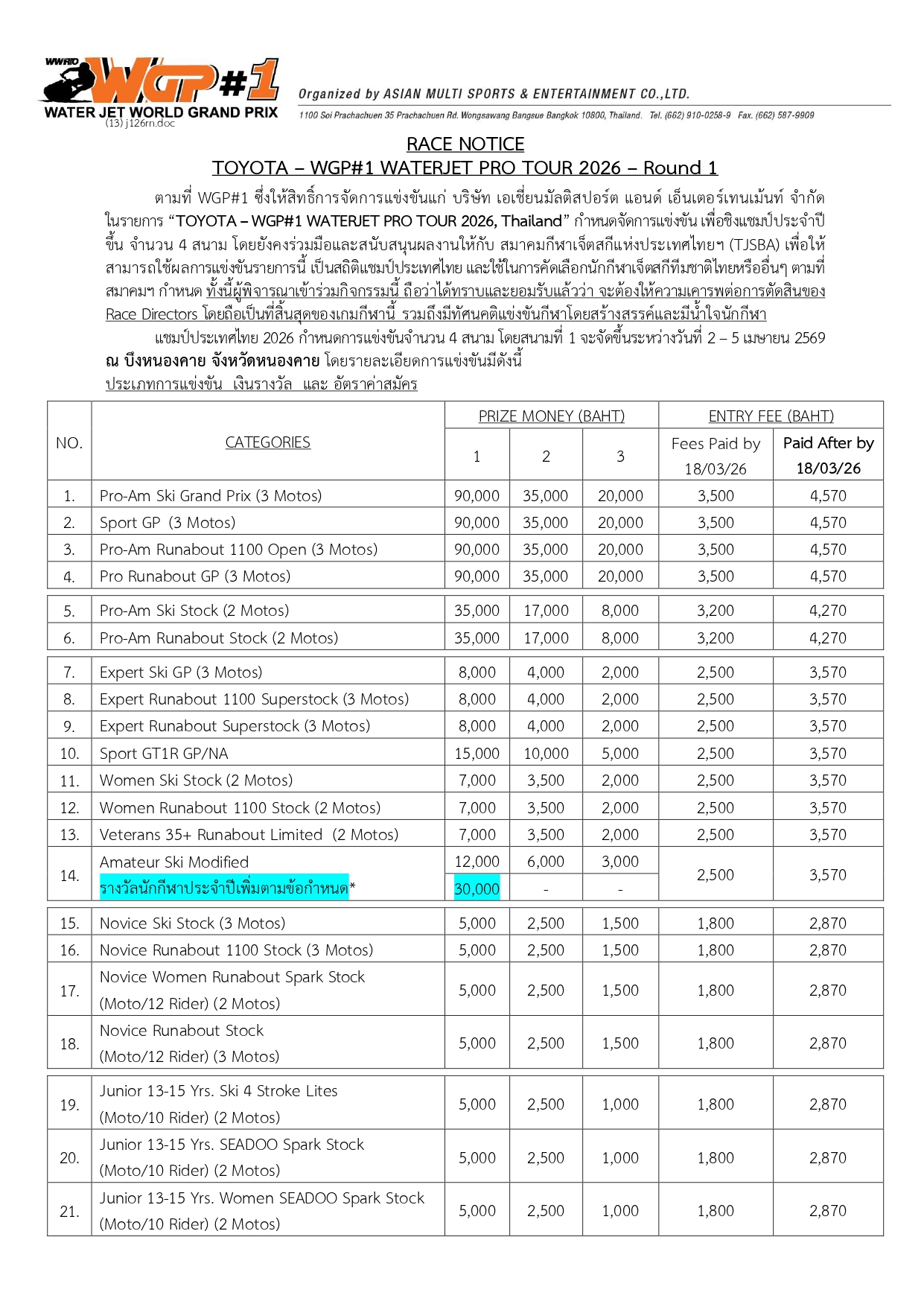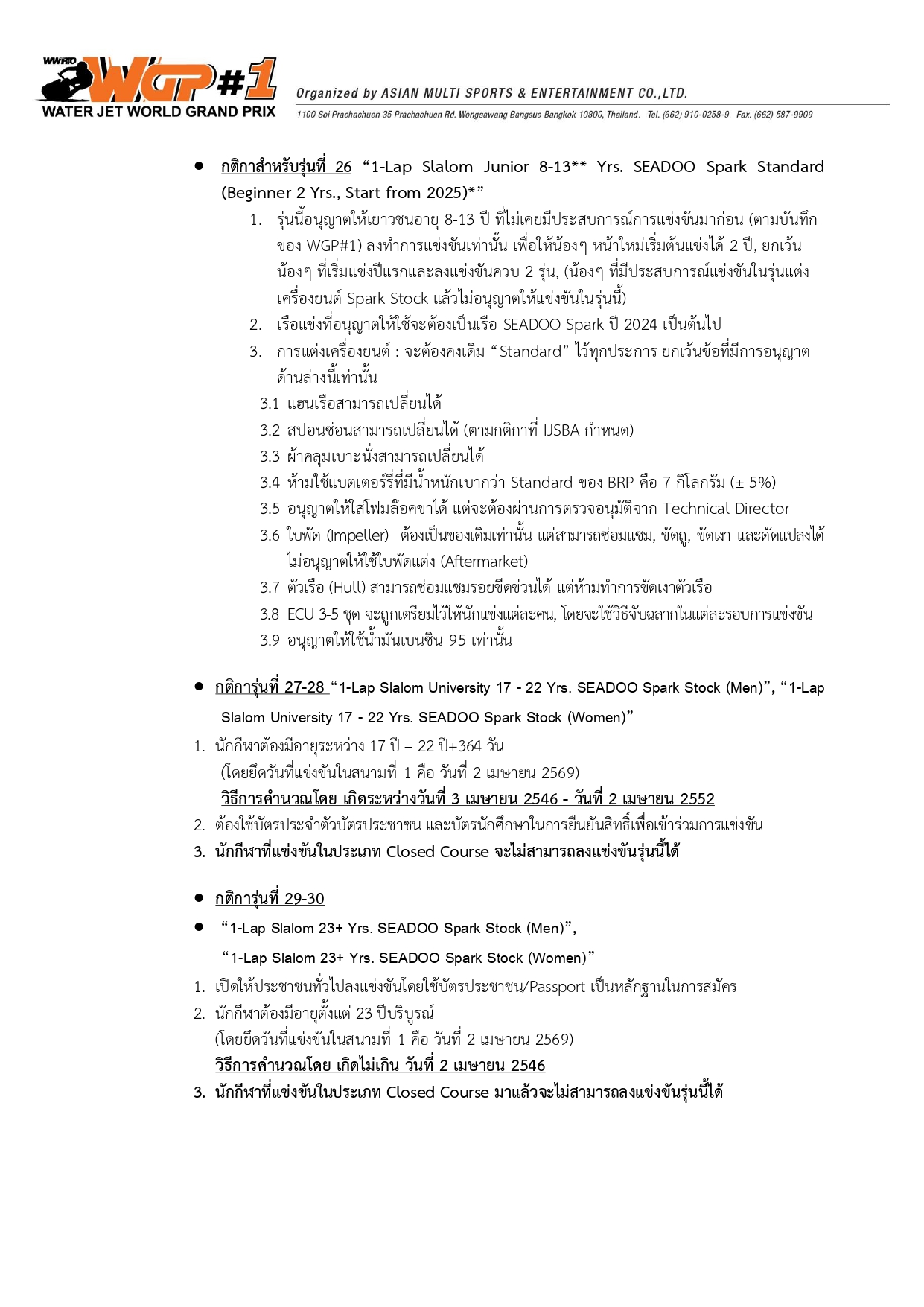 Race Notice Round 1 - ประกาศการแข่งขันและข้อกำหนด สนามที่ 1