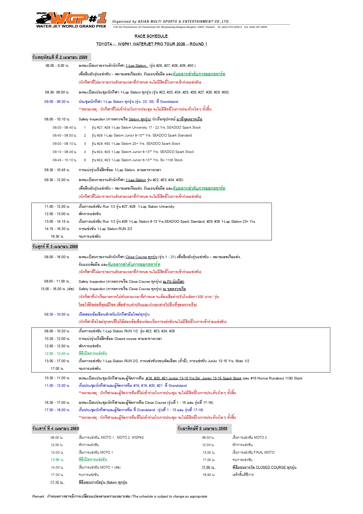 Race Schedule Round 1 - กำหนดการแข่งขัน สนามที่ 1