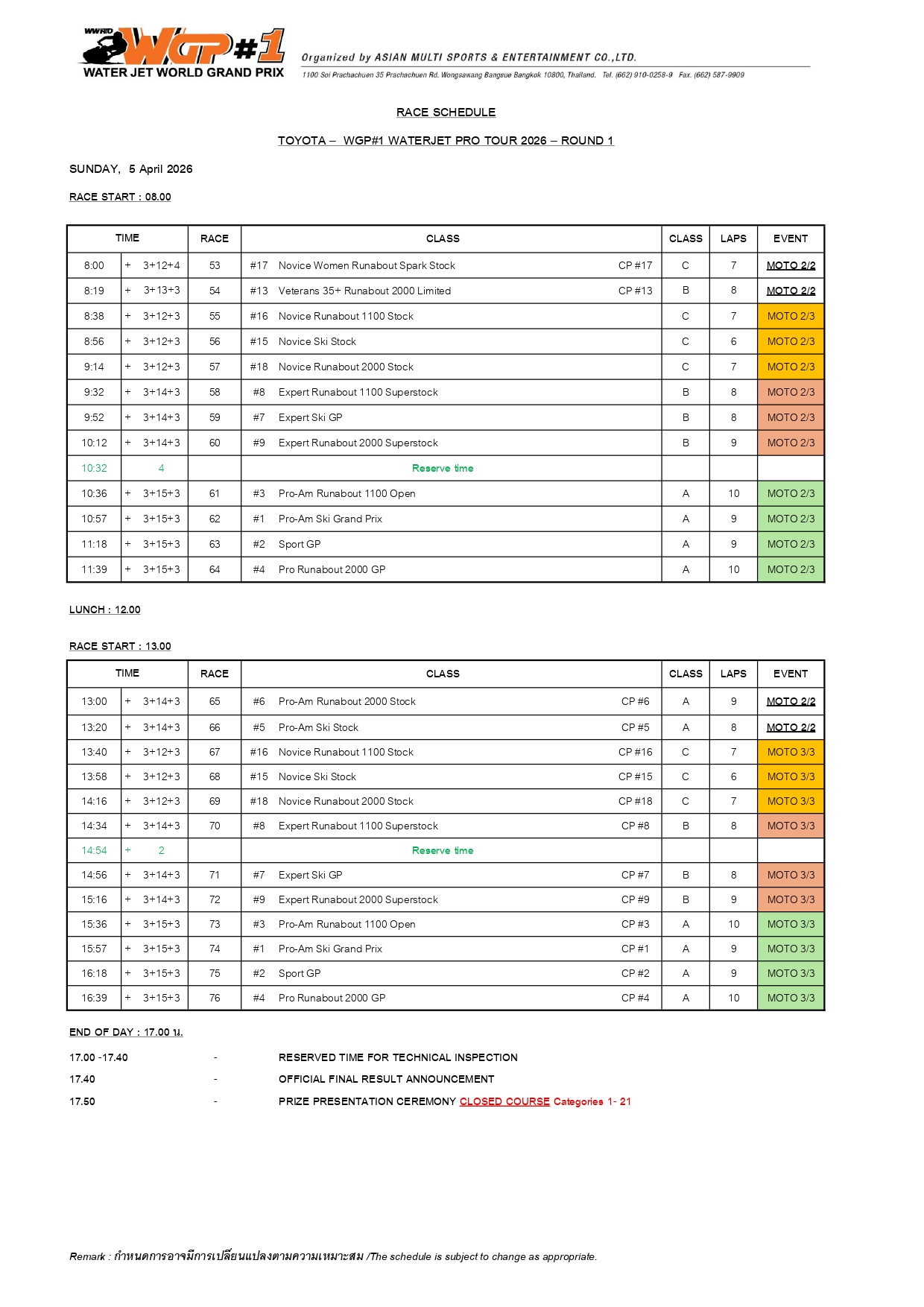 ⇲ Download Race Schedule (PDF File) update 15-3-2026